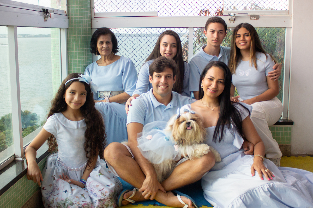 Família na chegada da festa