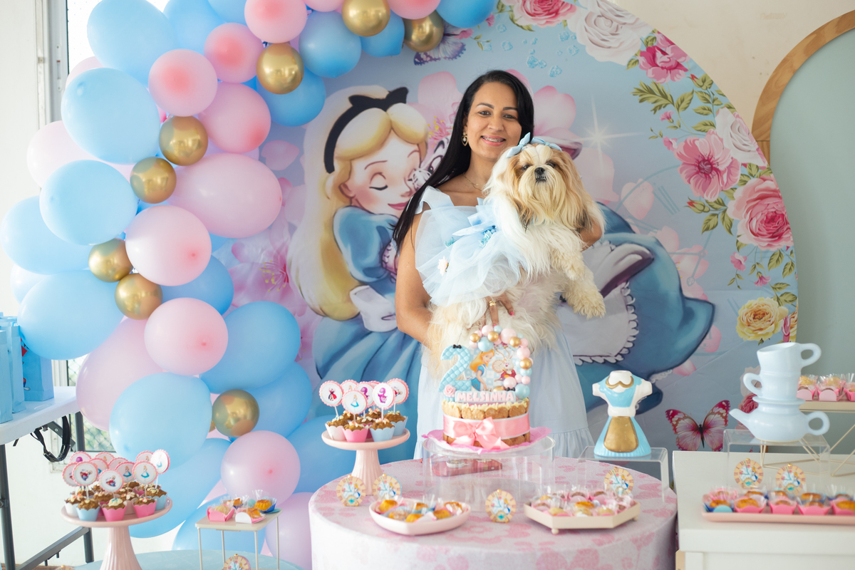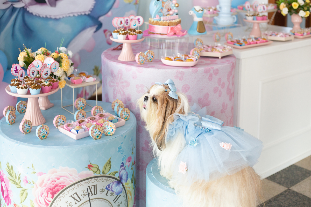 Mesa do bolo Alice no pais das maravilhas